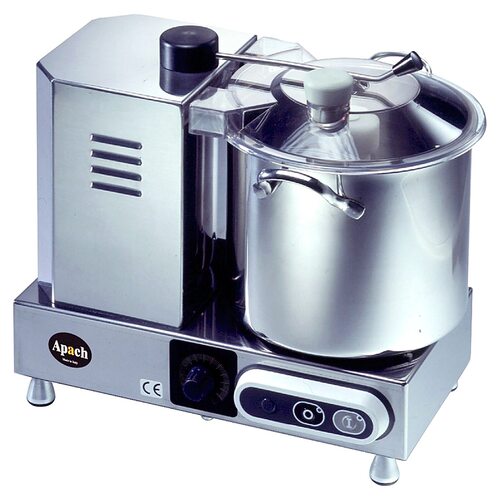 Куттер Apach ACT6 предназначен для измельчения, взбивания и смешивания продуктов, приготовления кремов, паштетов и соусов на предприятиях общественного питания и торговли. Модель оснащена вентилируемым мотором, съемной дежой с теплопроводящим днищем и ручками и прозрачной крышкой с запорным рычагом и отверстием для добавления ингредиентов в процессе работы. Корпус выполнен из нержавеющей стали AISI 304, дежа - из нержавеющей стали 18/10, ножи - из закаленной нержавеющей стали AISI 420.В комплект поставки входят точильный камень и скребок.Дополнительные характеристики: