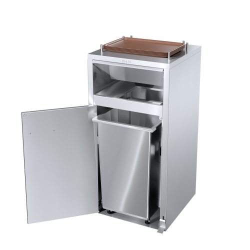 Станция сбора отходов предназначена для сбора одноразовой посуды, упаковки от фаст-фуда и прочего мусора, а также для временного хранения использованных подносов в точках общественного питания и ресторанах самообслуживания.
