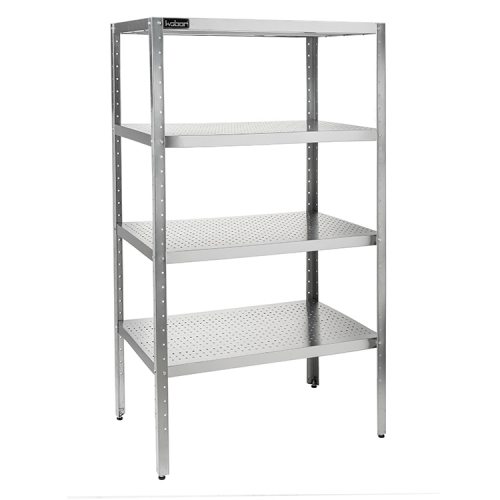 Особенности:- 4 полки-перфорированные - нерж. сталь. aisi 430,- каркас уголок оцинк. стальДополнительные опции: