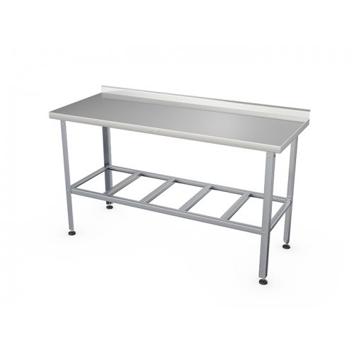 - Наличие борта позволяет располагать стол вдоль стены, исключая попадание остатков обрабатываемой продукции на пол, что значительно упрощает уборку помещения